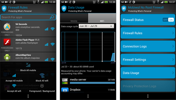 Mobiwol es un cortafuegos para Android que permite deshabilitar la conexión para cualquier app. Por ejemplo, puedes deshabilitar el uso de datos en WhatsApp cuando no esté abierto: así solo recibirás los mensajes cuando abras los chats. Otro uso interesante es deshabilitar la conexión en juegos que solo la usan para descargar publicidad.