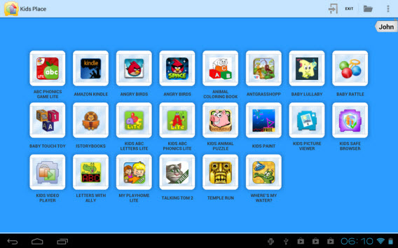 Kids Place permite crear pantallas de inicio para múltiples usuarios de una misma tableta. Cada pantalla puede tener apps y fondos diferentes. Kids Place puede bloquear llamadas entrantes, apagar la antena WiFi y reiniciar automáticamente juegos que se han bloqueado. Obviamente, su configuración está protegida con el código que definas.
