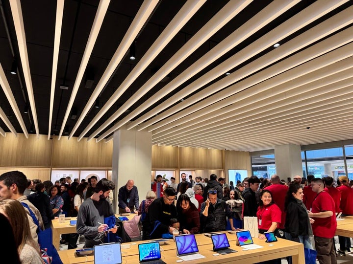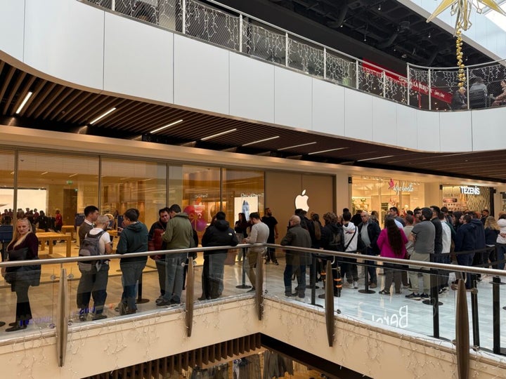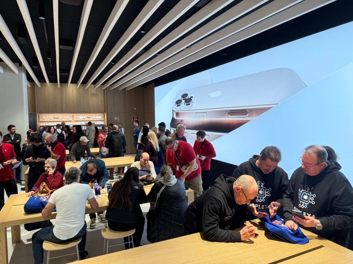 De ahí, solo puedes pararte y mirar a tu alrededor. La alegría del que ha esperado a comprar un producto de Apple en la tienda en su primer día se nota, mientras los empleados están simplemente encantados de formar parte de un referente como es un Apple Store. Todo el mundo celebra el día. Puedes preguntar a un perfecto desconocido qué iPhone está considerando o felicitarlo por el Mac que acaba de comprar, el ambiente invita a disfrutar juntos.