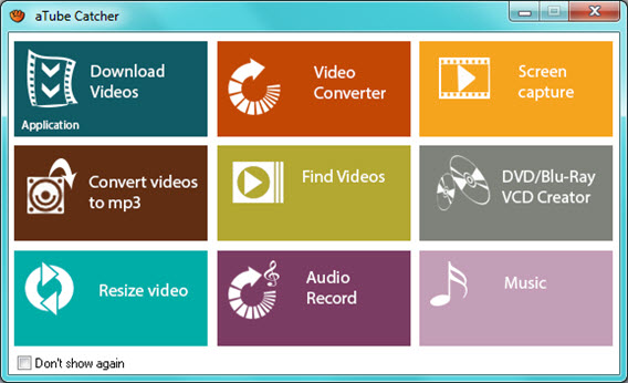 Si cerraste esta ventana o has marcado “Don’t show again”, la puedes traer de vuelta pulsando el icono en la parte superior derecha de la ventana principal de aTube Catcher.