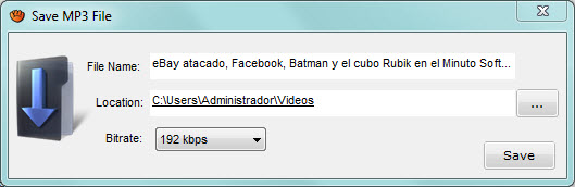 Cuando has dado con la canción que buscas, selecciónala y pulsa Descargar selección. Acto seguido se abre una ventana emergente donde elegir el nombre del archivo resultante, su ubicación y la calidad del archivo.