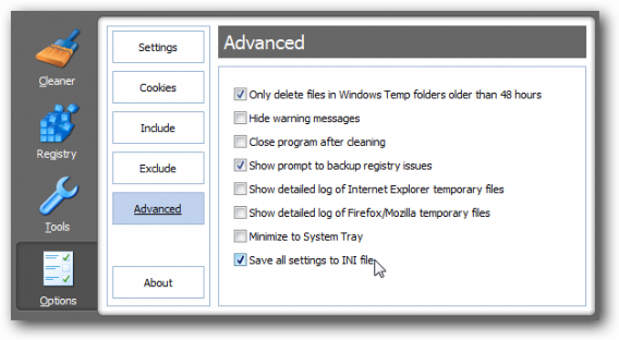 Una vez hecho, entra a Opciones > Avanzadas asegúrate de que está marcada la opción “Guardar todos los ajustes en un archivo INI”. De esta forma se guardará tu configuración para siempre.