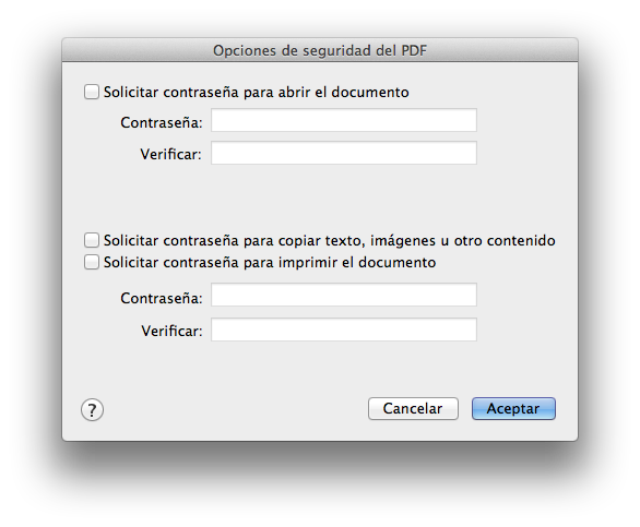 La primera opción, Solicitar contraseña para abrir el documento, sirve para que el PDF sea accesible sólo si conoces la contraseña. En caso contrario no verás el contenido del documento.