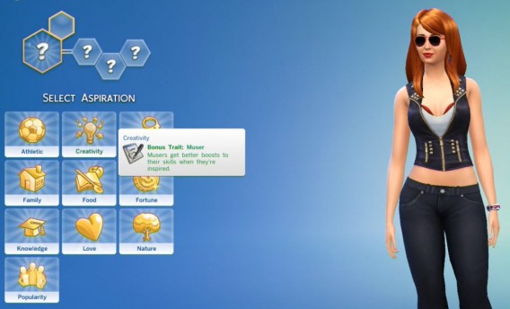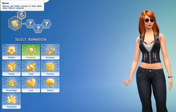 Habrá que ver cómo influyen estos deseos en la vida de tu sim, pero lo que ya te puedo avanzar es que seleccionando una aspiración desbloqueas un rasgo bonus. En mi caso es “Muser” un rasgo que me dará “Inspiración” cuando esté ejercitando determinadas habilidades.