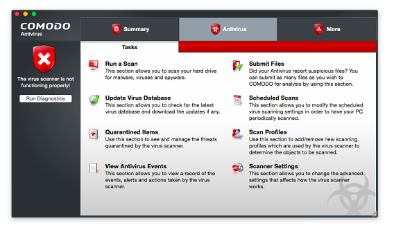 Comodo, un nombre que asociamos tradicionalmente a Windows también está en Mac gracias a Comodo Antivirus for Mac. Lo tiene todo: protección continua, actualizaciones automáticas y la posibilidad de analizar archivos que se sueltan sobre el icono del dock. Según AV-Test, su tasa de detección es del 83,8%.