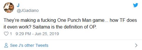 “Van a hacer un maldito juego de One Punch Man… ¿cómo diantres va a funcionar? Saitama es la definición del héroe súper-poderoso”.
