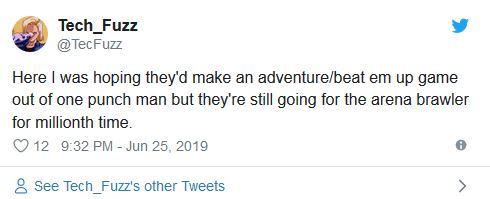 “Yo aquí esperando una aventura o un beat’em up de One Punch Man pero todavía siguen obsesionados con los juegos tipo arena de combate”.