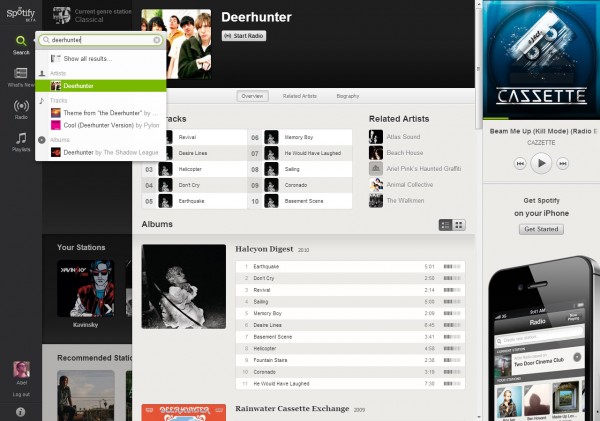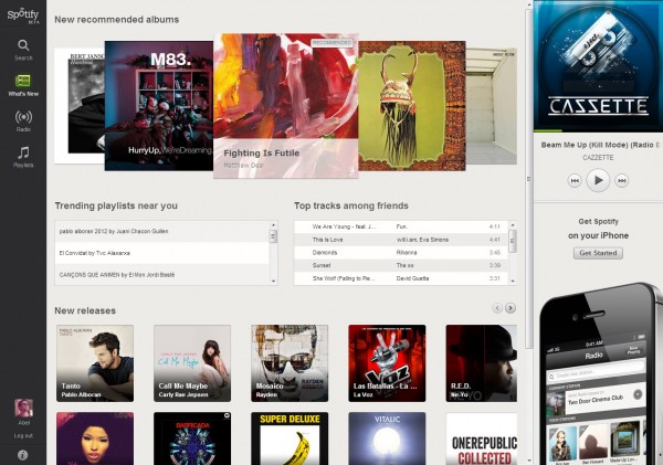 Finalmente, en cuanto a rendimiento, quizás hemos notado la carga de la página ligeramente más lenta que en Grooveshark, sobre todo en cuanto a animaciones de las diferentes secciones. También es cierto que la interfaz del Spotify es algo más recargada, con múltiples páginas mostrándose en capas al mismo tiempo.