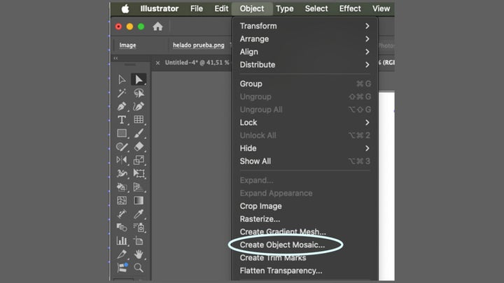 - Selecciona tu ilustración y dirígete a Object y después, selecciona Create Object Mosaic.