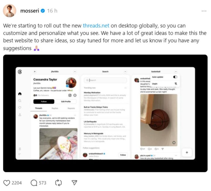 “Estamos comenzando a implementar el nuevo threads.net en computadoras de escritorio a nivel mundial, para que puedas personalizar lo que ves. Tenemos muchas ideas geniales para hacer de este el mejor sitio web para compartir ideas, así que estad atentos para más y más. Háganos saber si tiene alguna sugerencia”, indicaba recientemente Adam Mosseri, director de Instagram, para anunciar la llegada de esta nueva funcionalidad.