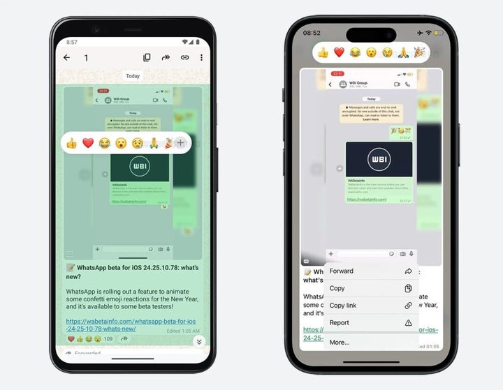 Según reveló WABetaInfo, esta actualización expande la bandeja de reacciones y añade un toque más animado a las interacciones en la app. Aunque siempre ha sido posible responder con cualquier emoji disponible, la selección rápida de estos predeterminados hace que sea mucho más fácil reaccionar inmediatamente a un ser querido.