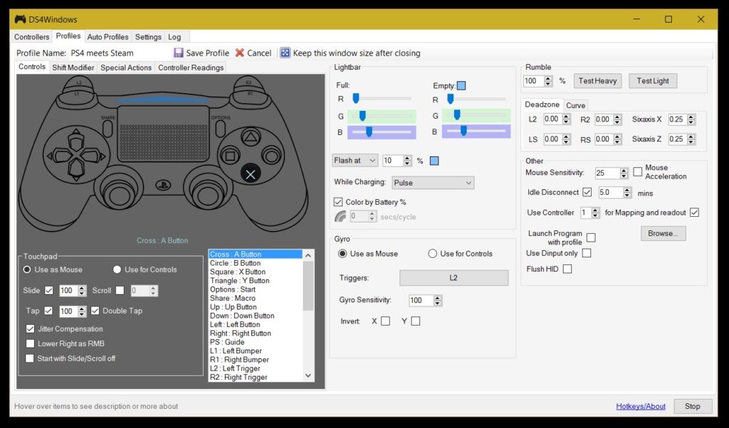 Una vez hecho esto vas a poder ver un mapa con todas las funcionalidades tanto de tu teclado y ratón y cómo éstas se traducen en tu mando. Ajusta las opciones según tus necesidades y, una vez hayas terminado, no olvides guardar la configuración en tu perfil de usuario.